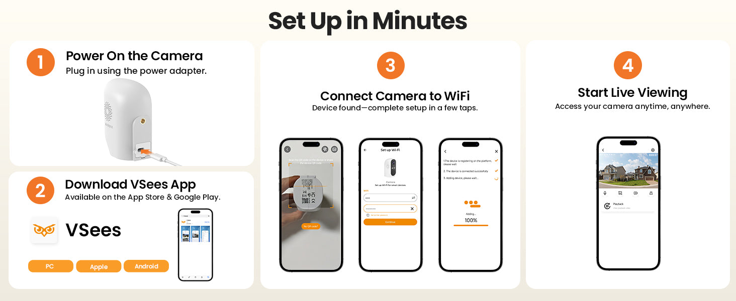 Anlapus A61 3MP 2.4GHz WiFi Camera, Up to 256GB Local Storage & Cloud Storage