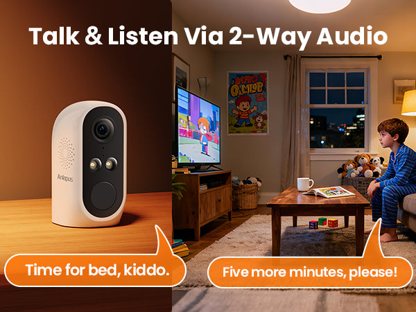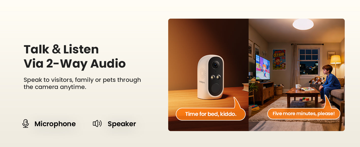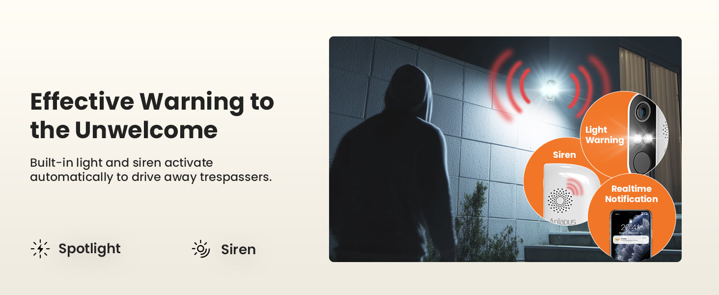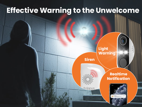 • 2-Way Audio: Built-in speaker and microphone allows the ability to deter or welcome visitors.