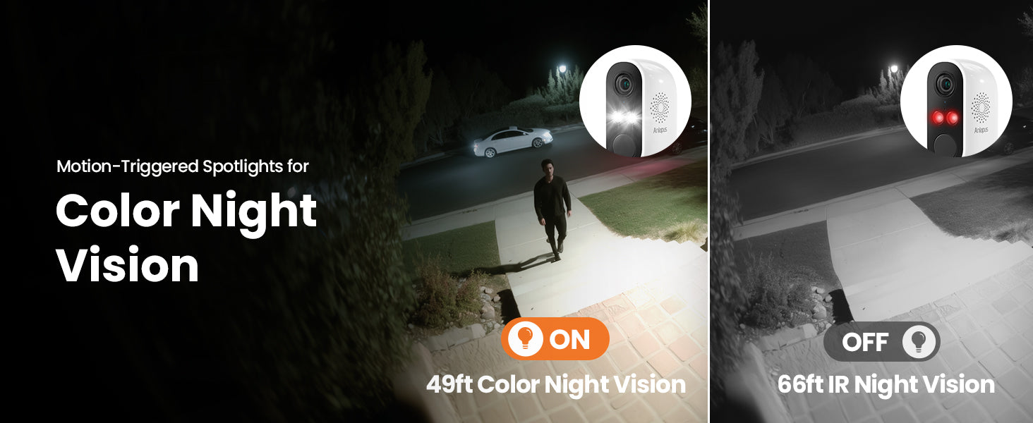 • 2K Ultra HD: 3 modes night vision technology (full color, black and white, smart), provides clear images day or night.