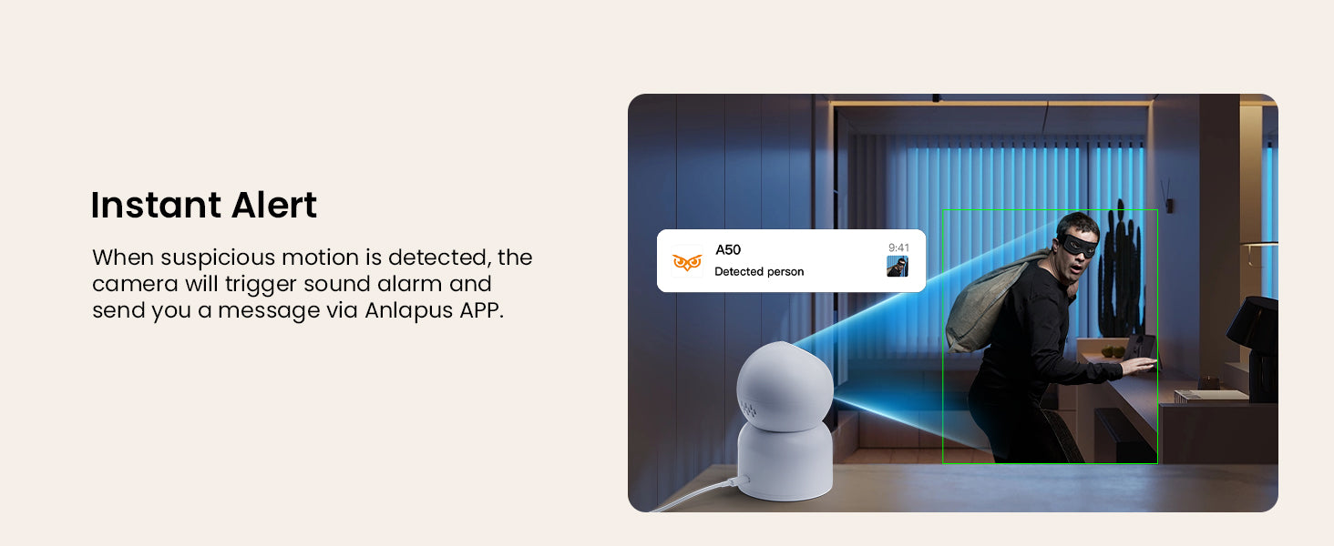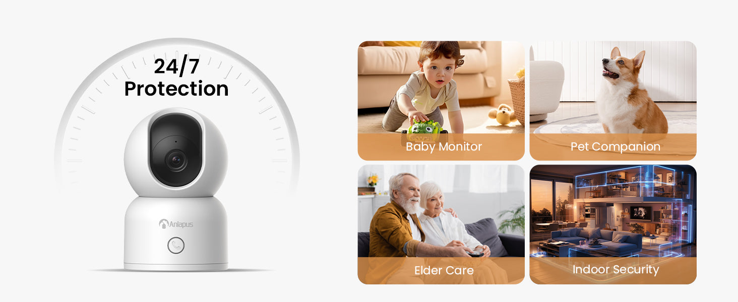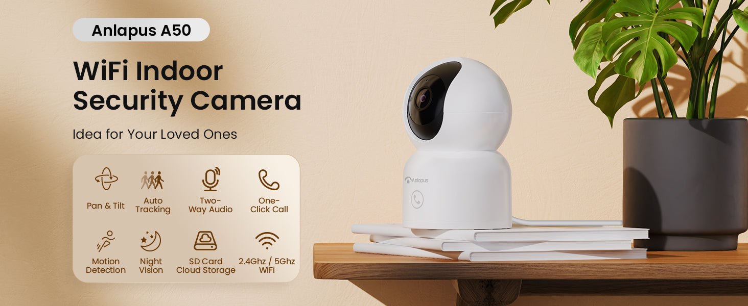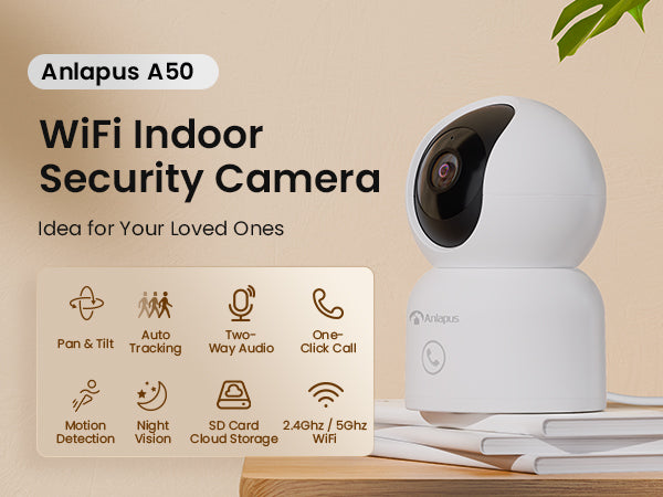 •Dual Bands WiFi: Anlapus WiFi indoor camera effortlessly supports both 2.4GHz and 5GHz bands, for a stronger signal and faster WiFi connection.