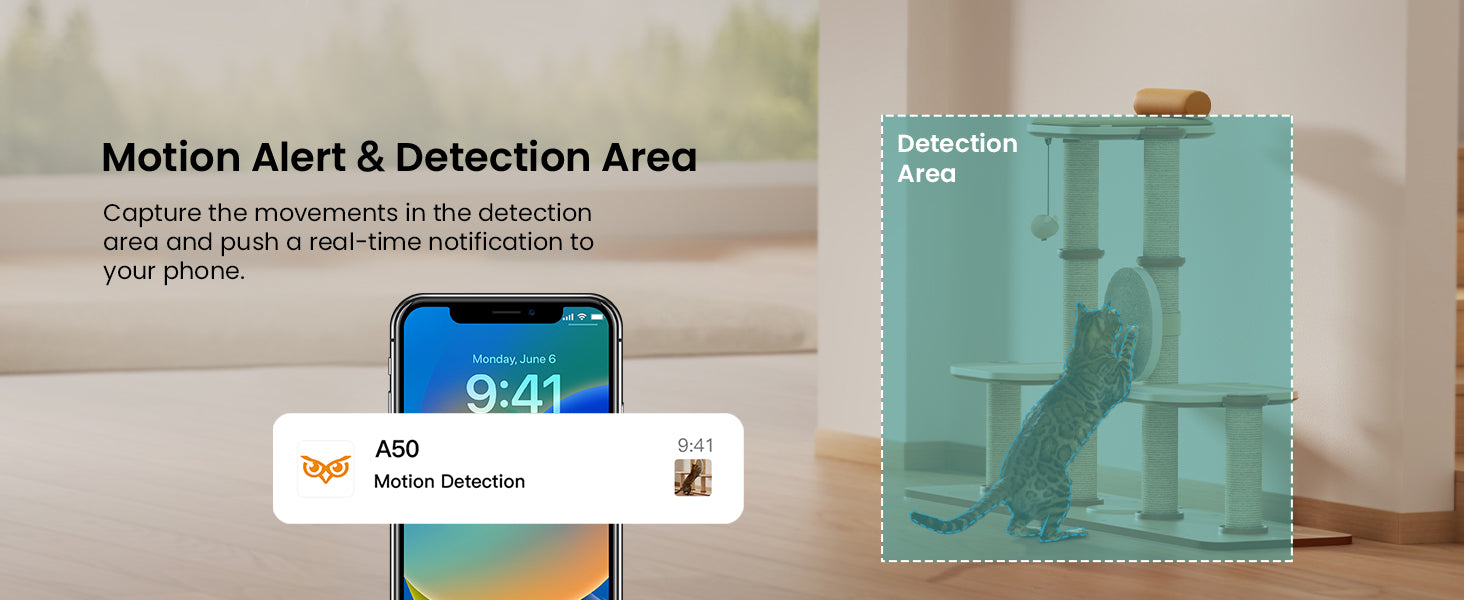 • Motion Detection: With its built-in AI detection, this camera detects motion and promptly sending alarm notifications to the app.