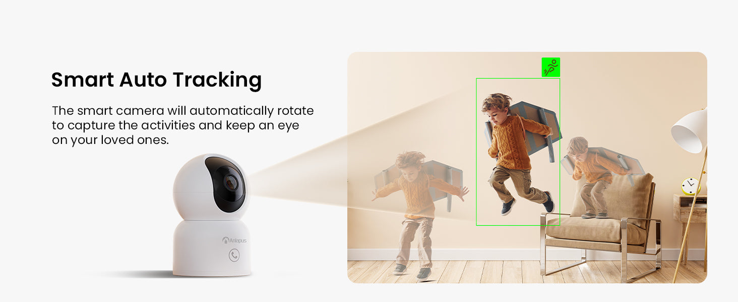 • Auto Tracking: The camera intelligently tracks and follows human subjects within the monitoring area, keeping them in focus regardless of their movements.